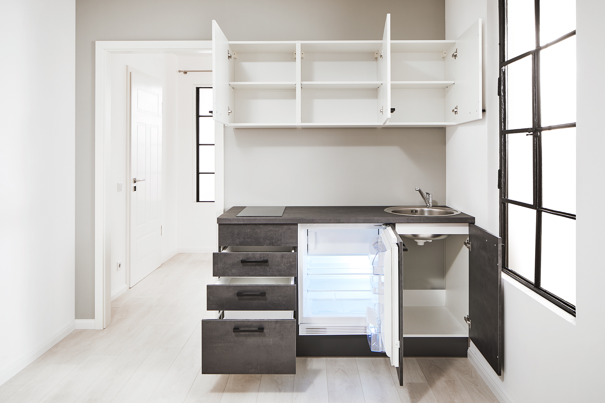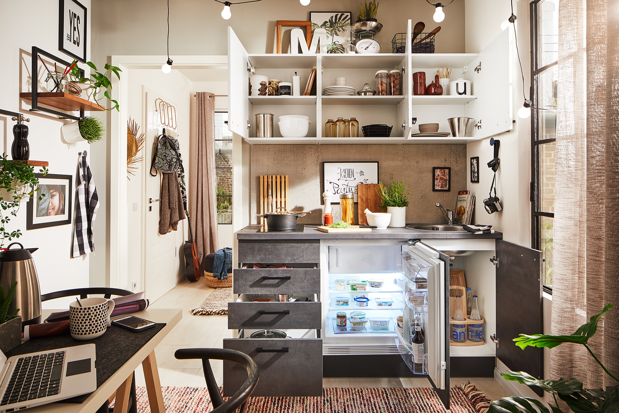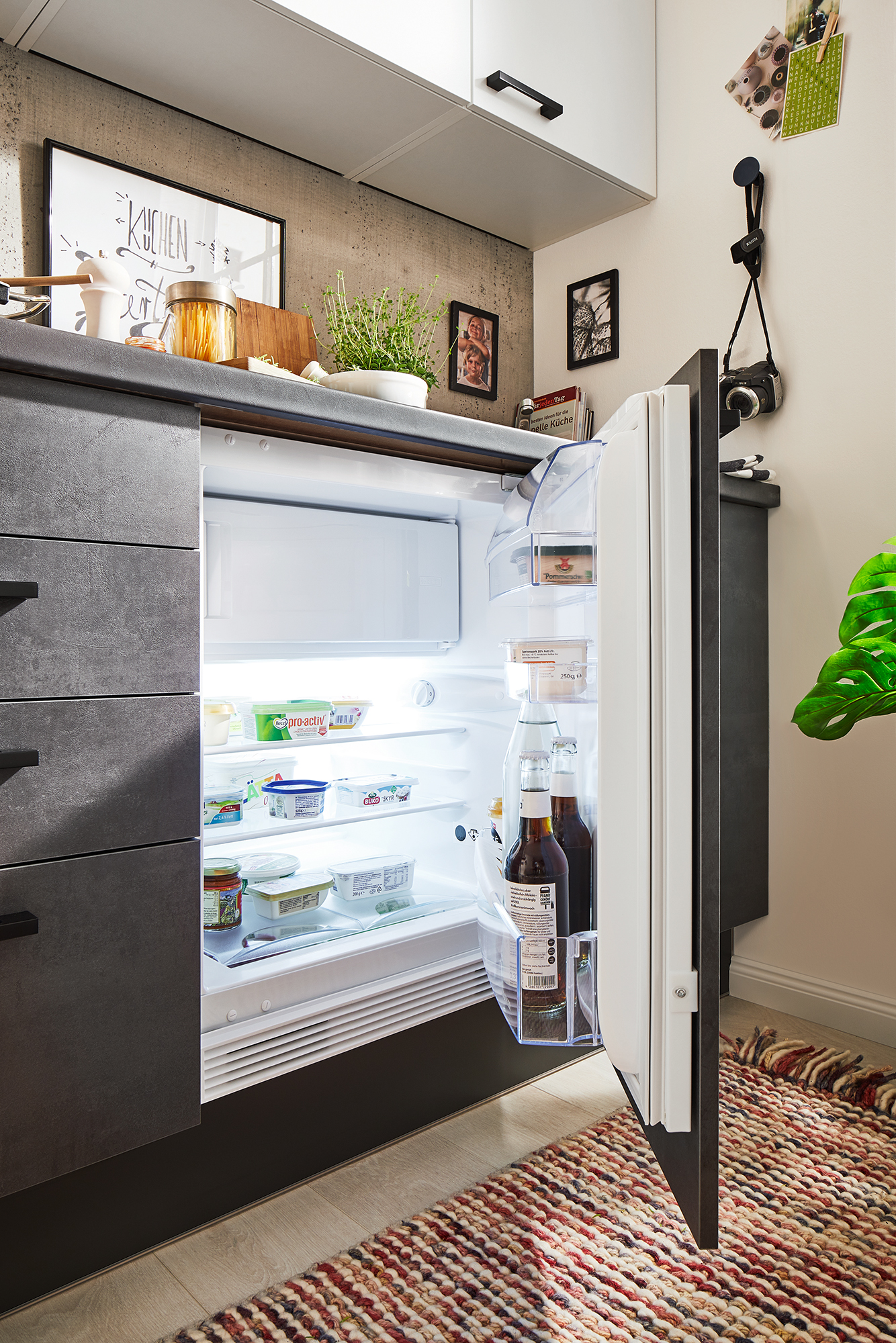 “Obwohl in meiner Zweizimmerwohnung wenig Platz ist, möchte ich auf eine moderne und stylische Küche nicht verzichten. Da ist diese Küche ideal für mich, denn sie nutzt den kleinen Raum perfekt und sieht einfach toll aus.” – Alice (24)