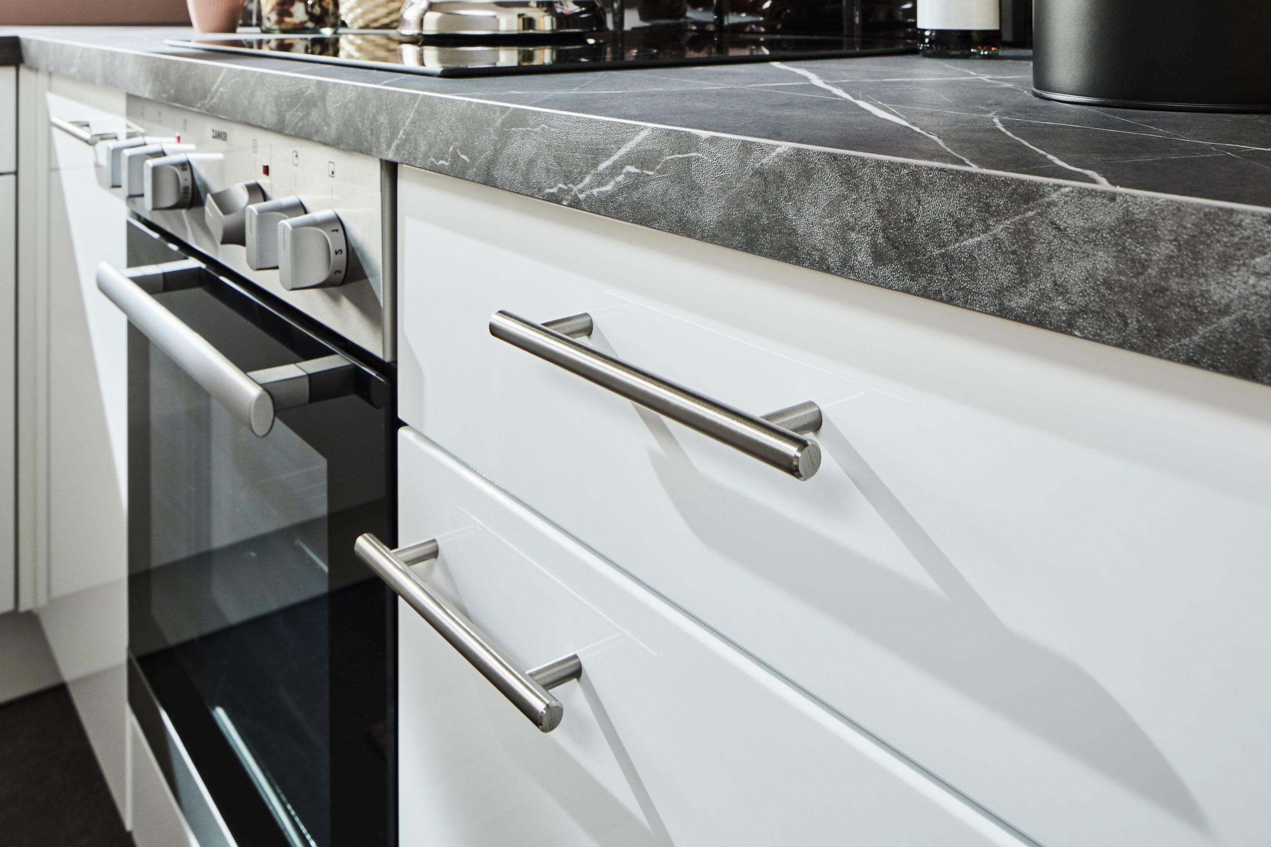 Höhenverstellbare Sockelfüße ermöglichen ein perfektes Ausrichten der Küchen, die Sockelblende mit aufsteckbarem Dichtungsprofil verhindert das Eindringen von Wasser und Schmutz.