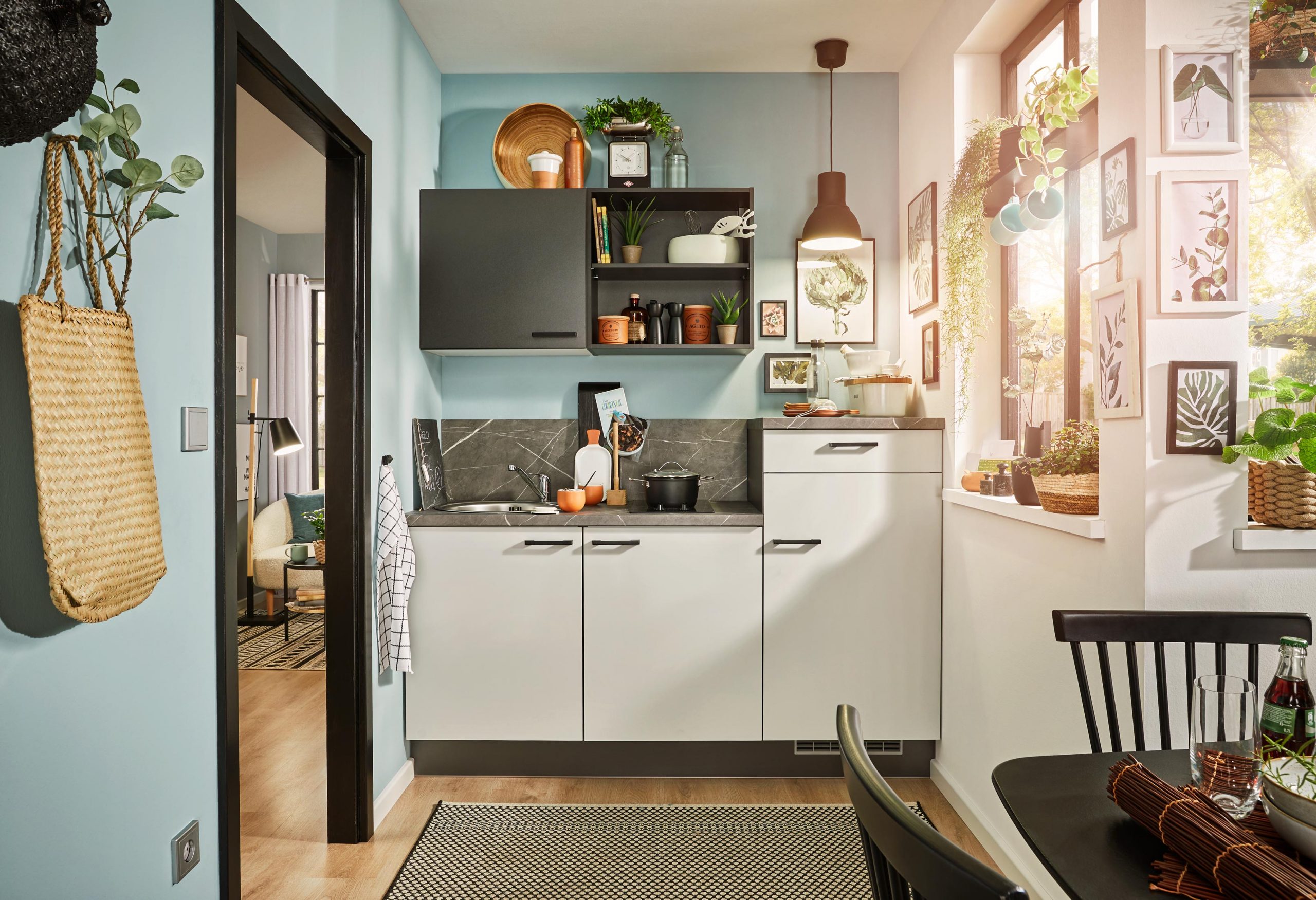 Made in Germany, hochwertig kratz- und abriebfest, Fronten und Korpus beidseitig melaminbeschichtet, besonders hohe Belastbarkeit der Sichtkanten Besonders stabile Qualitäts-Beschläge von Blum, praktischer Vollauszug, geräuscharmer Lauf mit Softclose-Technik; selbstschließende Türscharniere mit 107° Öffnungswinkel für den bequemen Zugang zum Stauraum