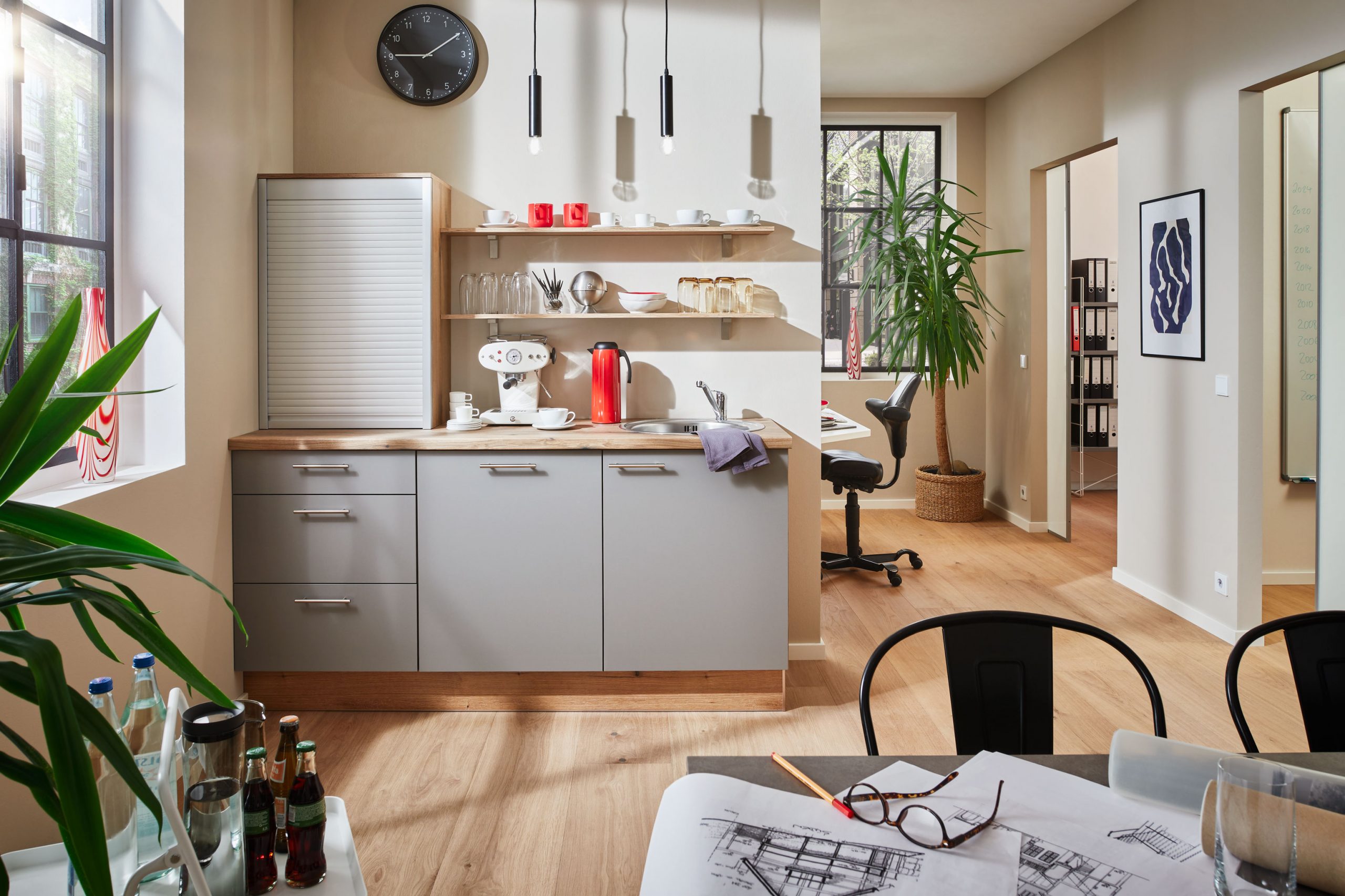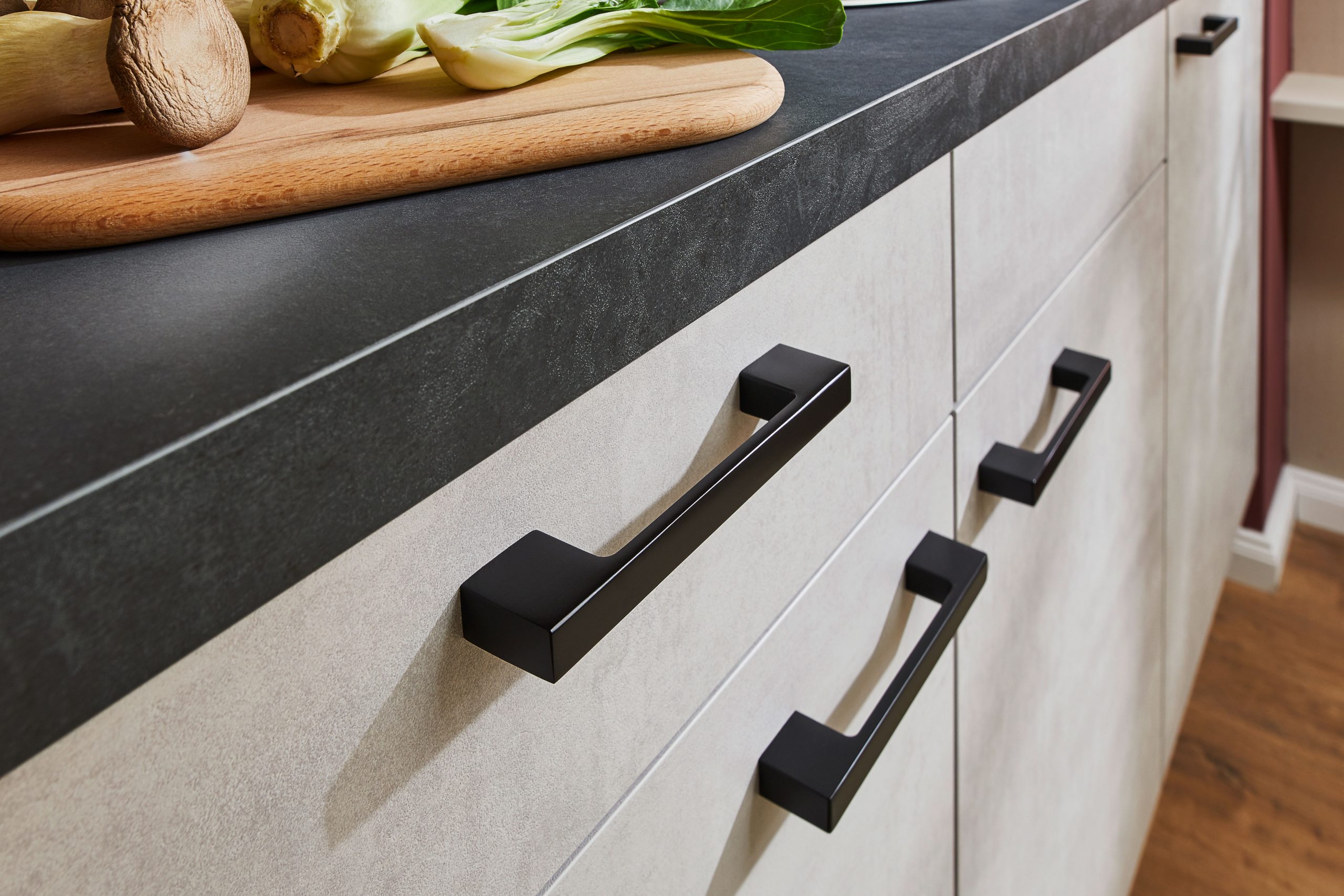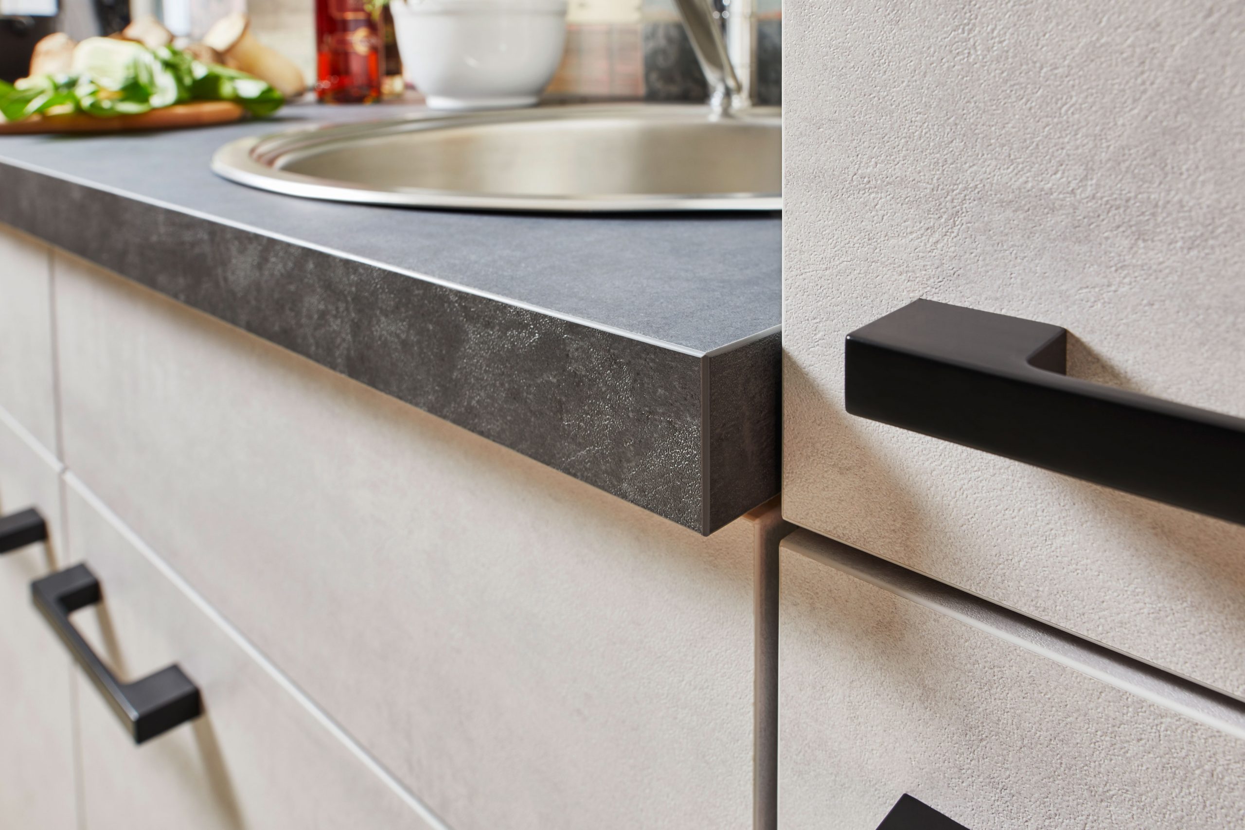 Höhenverstellbare Sockelfüße ermöglichen ein perfektes Ausrichten der Küchen, die Sockelblende mit aufsteckbarem Dichtungsprofil verhindert das Eindringen von Wasser und Schmutz.