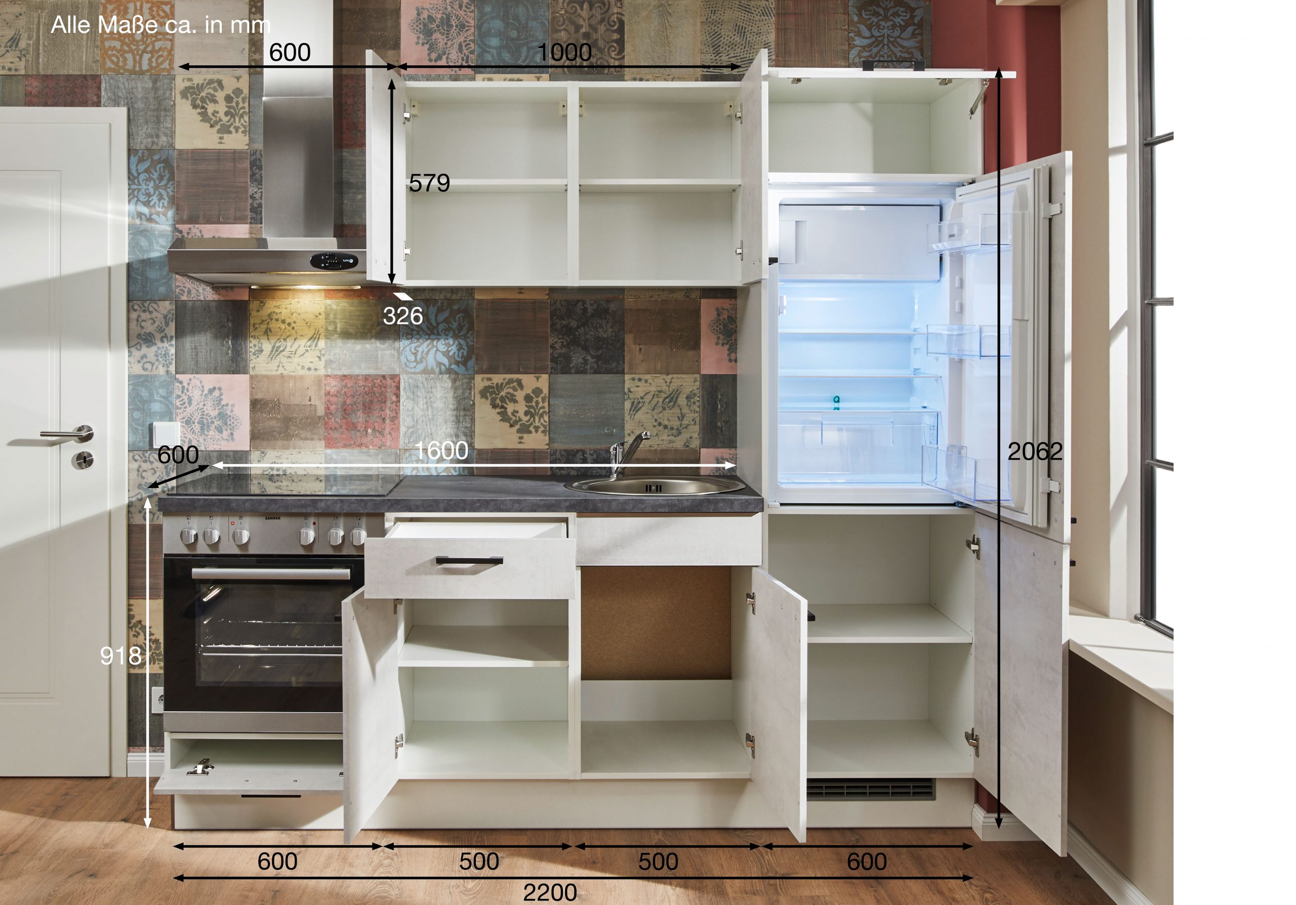 Zanker-Einbaugeräte: Kühlschrank, Glaskeramik-Kochfeld, Spüle + Armatur, Arbeitsplattenausschnitte für Spüle und Kochfeld
